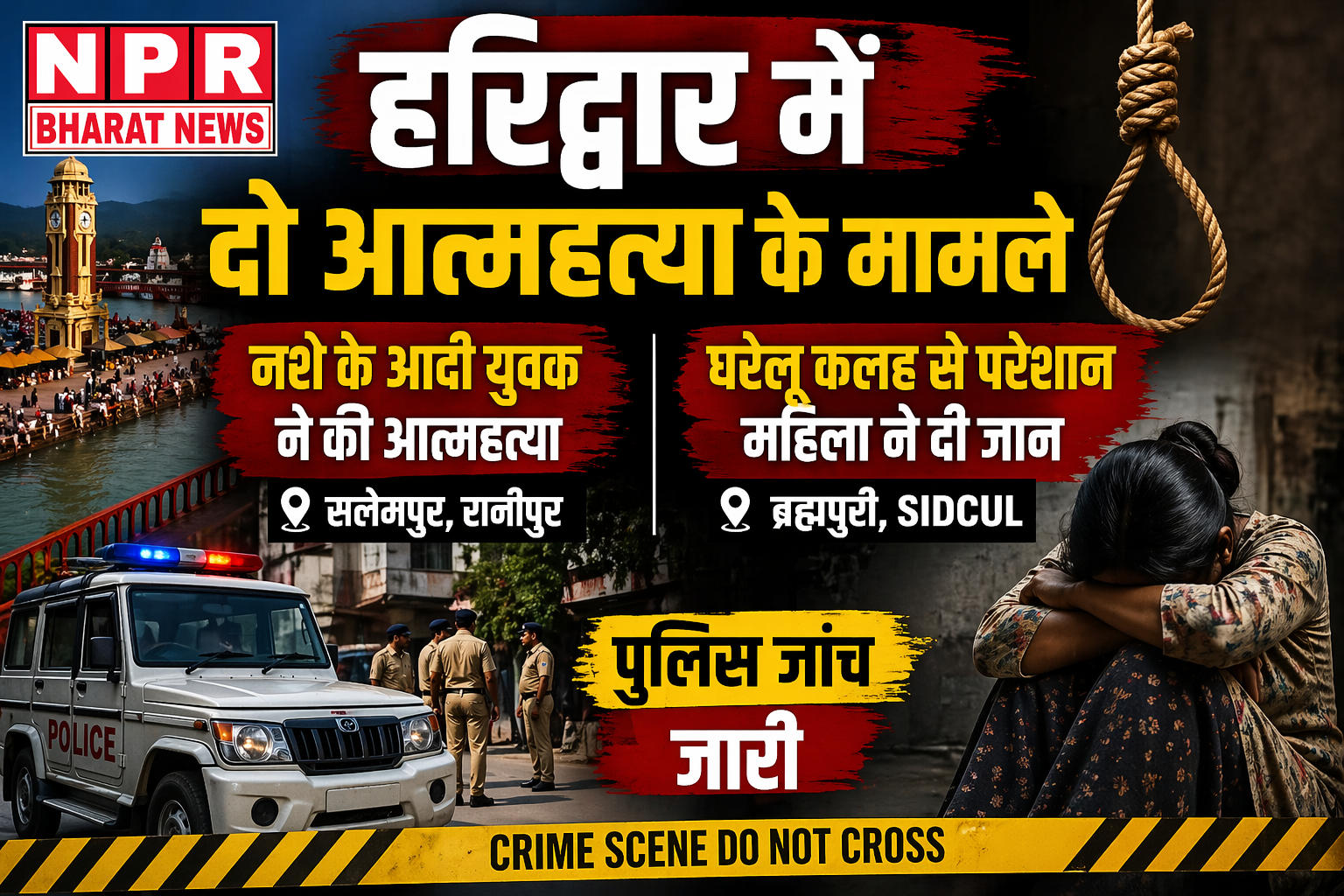 Haridwar में आत्महत्या के दो अलग-अलग मामलों ने इलाके में सनसनी फैला दी है। एक घटना रानीपुर कोतवाली क्षेत्र के सलेमपुर गांव में हुई, जबकि दूसरी घटना SIDCUL थाना क्षेत्र के ब्रह्मपुरी इलाके में सामने आई है। दोनों मामलों में पुलिस ने शवों को कब्जे में लेकर पोस्टमार्टम के लिए जिला अस्पताल भेज दिया है और जांच शुरू कर दी है। नशे के आदी युवक ने की आत्महत्या रानीपुर कोतवाली क्षेत्र के सलेमपुर गांव में 35 वर्षीय युवक ने फांसी लगाकर आत्महत्या कर ली। मृतक की पहचान नितिन कुमार के…