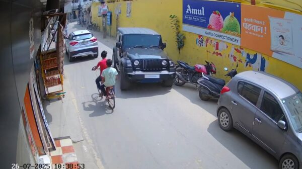 सोनीपत: हरियाणा के सोनीपत में एक तेज़ रफ़्तार थार ने एक स्कूटी को टक्कर मार दी, जिसका सीसीटीवी वीडियो सामने आया है, जिसने लोगों को चौंका दिया है।